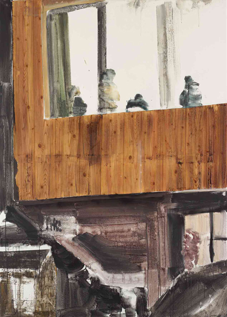exhibition, 200x140cm, acrylic and wallpaper on canvas, 2010