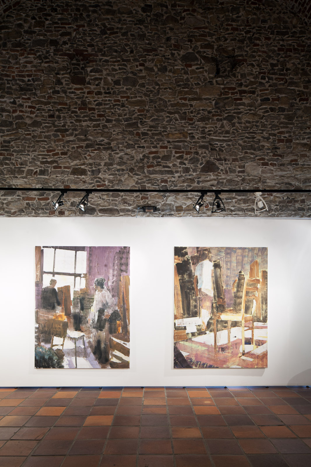 Židle, stojan a model v bílé košili, Galerie Vyšehrad, Praha 2015